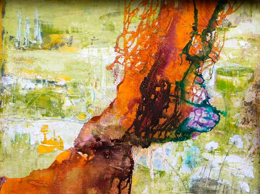 Die Ausstellung „Inspiration Natur“, die noch bis 21. Juni im Steigerwald-Zentrum in Handthal zu sehen ist, ist eine Hommage an die Natur, jene unerschöpfliche Inspirationsquelle, die das Schaffen der beiden Schwestern prägt. Gezeigt werden vorwiegend Acrylbilder, aber auch Werke in Mischtechnik. Zum Einsatz kommen natürliche Materialien wie Sand, Asche, Marmormehl, Öl und Wachs. Alte Techniken werden neu interpretiert: Durch Schütten, Drucken und Collagieren entstehen neue Bildfindungen.
